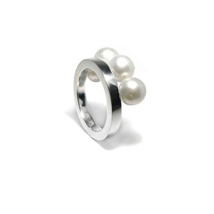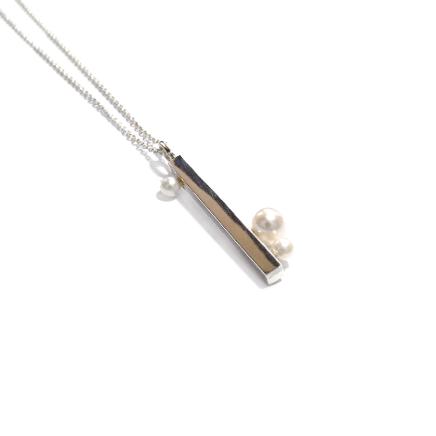 A simple row of freshwater pearls paired with a fluid swipe of sterling silver.